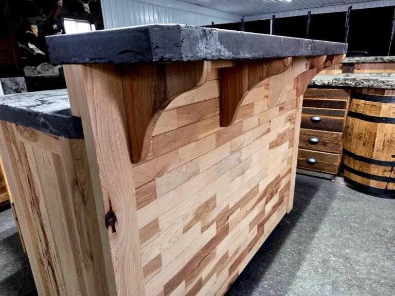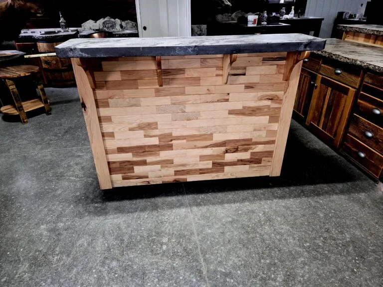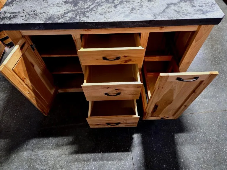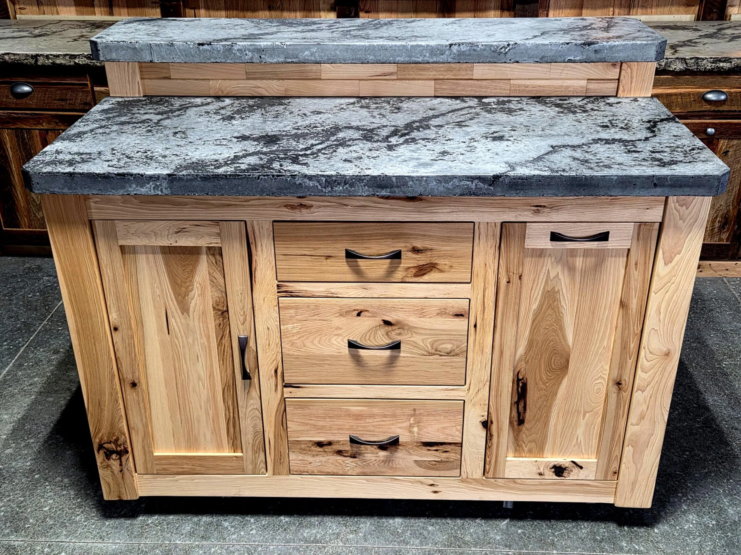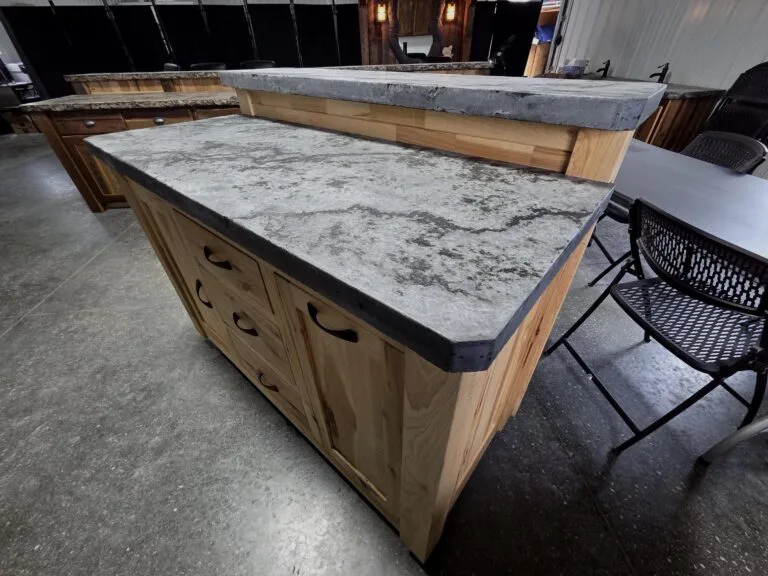 Kitchen Island with Concrete Countertop and Rustic Hickory Cabinet