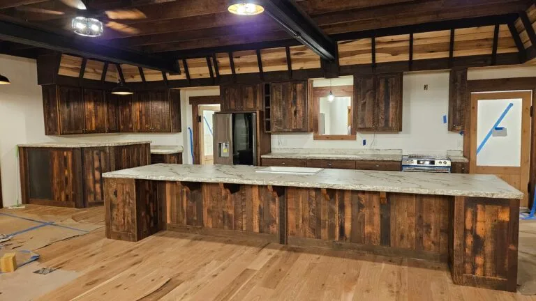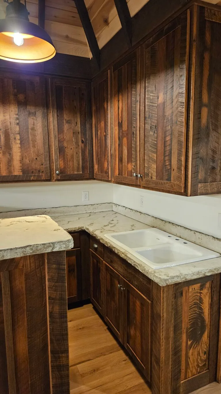 Barnwood Kitchen Cabinets and Concrete Countertops.
