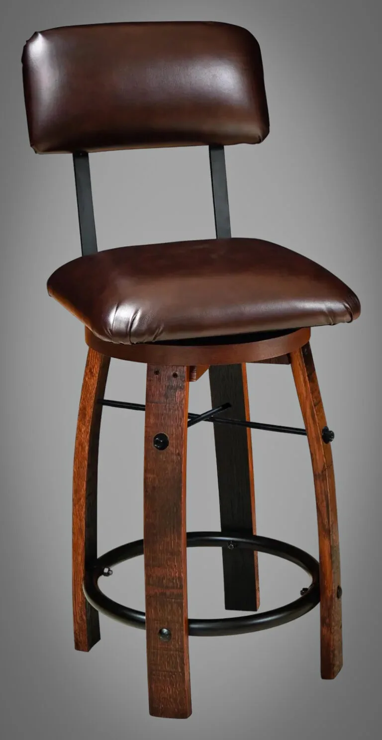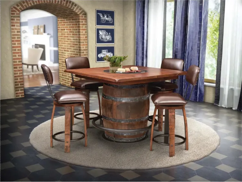 This 48” Barrel Table Set is an ideal complement to your home or cabin, offering a neat yet rustic appearance. The complete set includes the table, 4 stools, and a footrest. Handcrafted by Amish woodworkers in Holmes County, Ohio, shown in our Michael’s Cherry color. Enjoy free shipping to the lower 48 states.